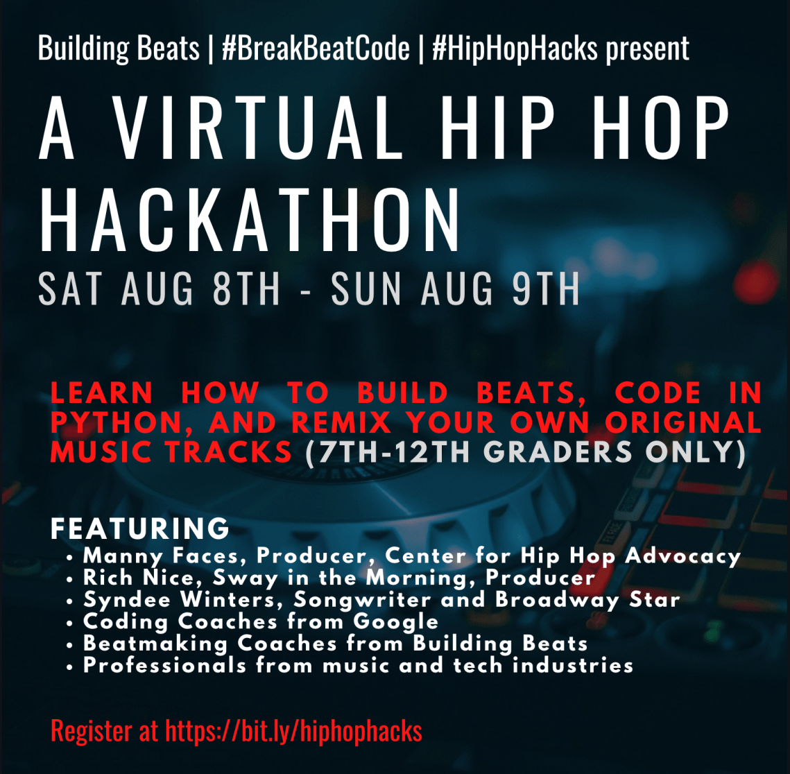 On Sunday, August 9th (4:00PM – 6:00PM Eastern Time; 1:00PM-3:30PM Pacific Time), we will have a virtual DJ party with DJ Siege who will remix students’ music tracks live.